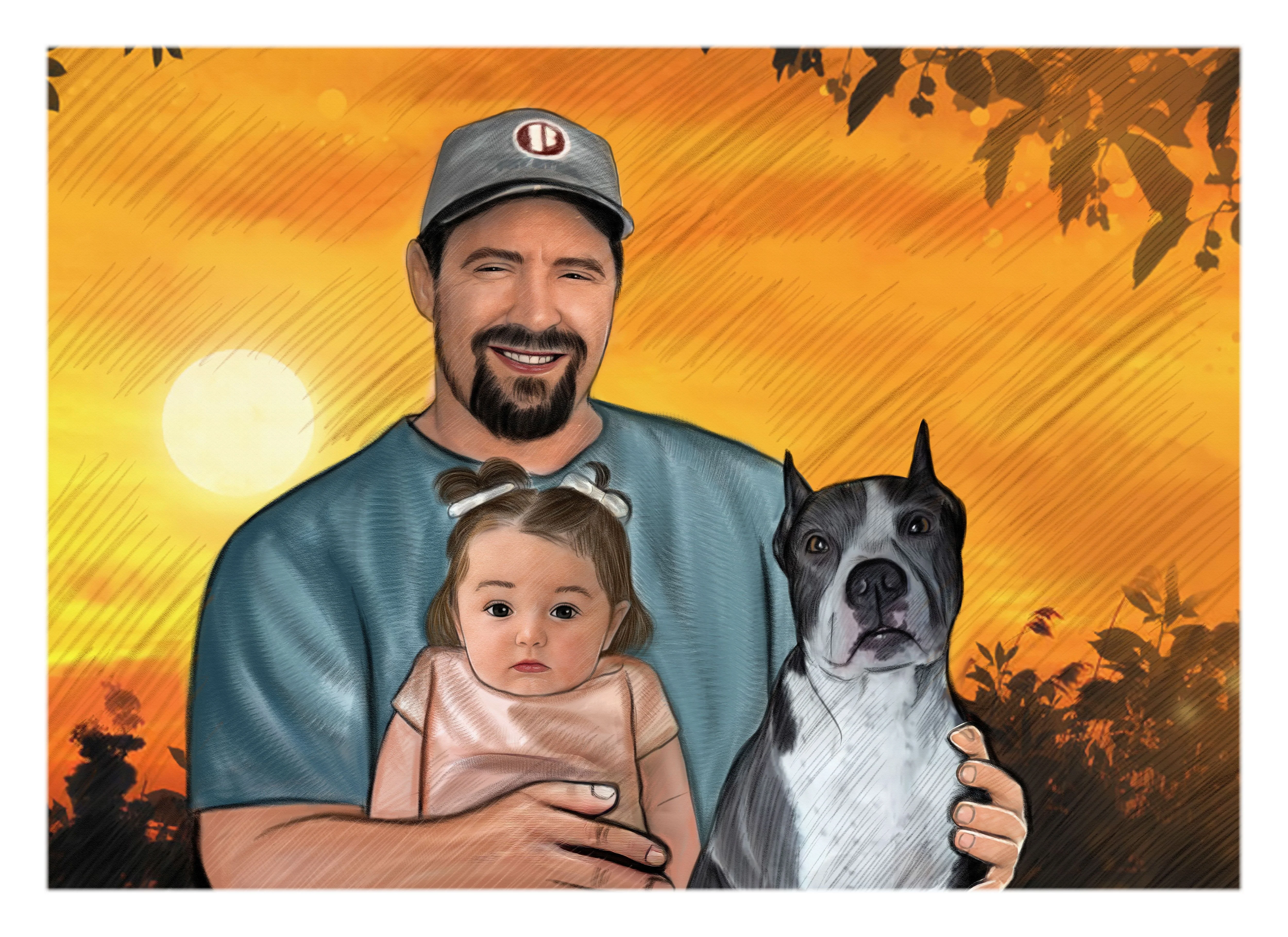 Color Portrait with pets/animals (with a drawn background)